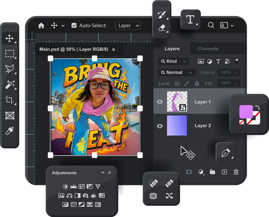 Desarrollo la identidad visual de marcas o proyectos, desde el logo hasta las piezas digitales para presentaciones, redes o web.